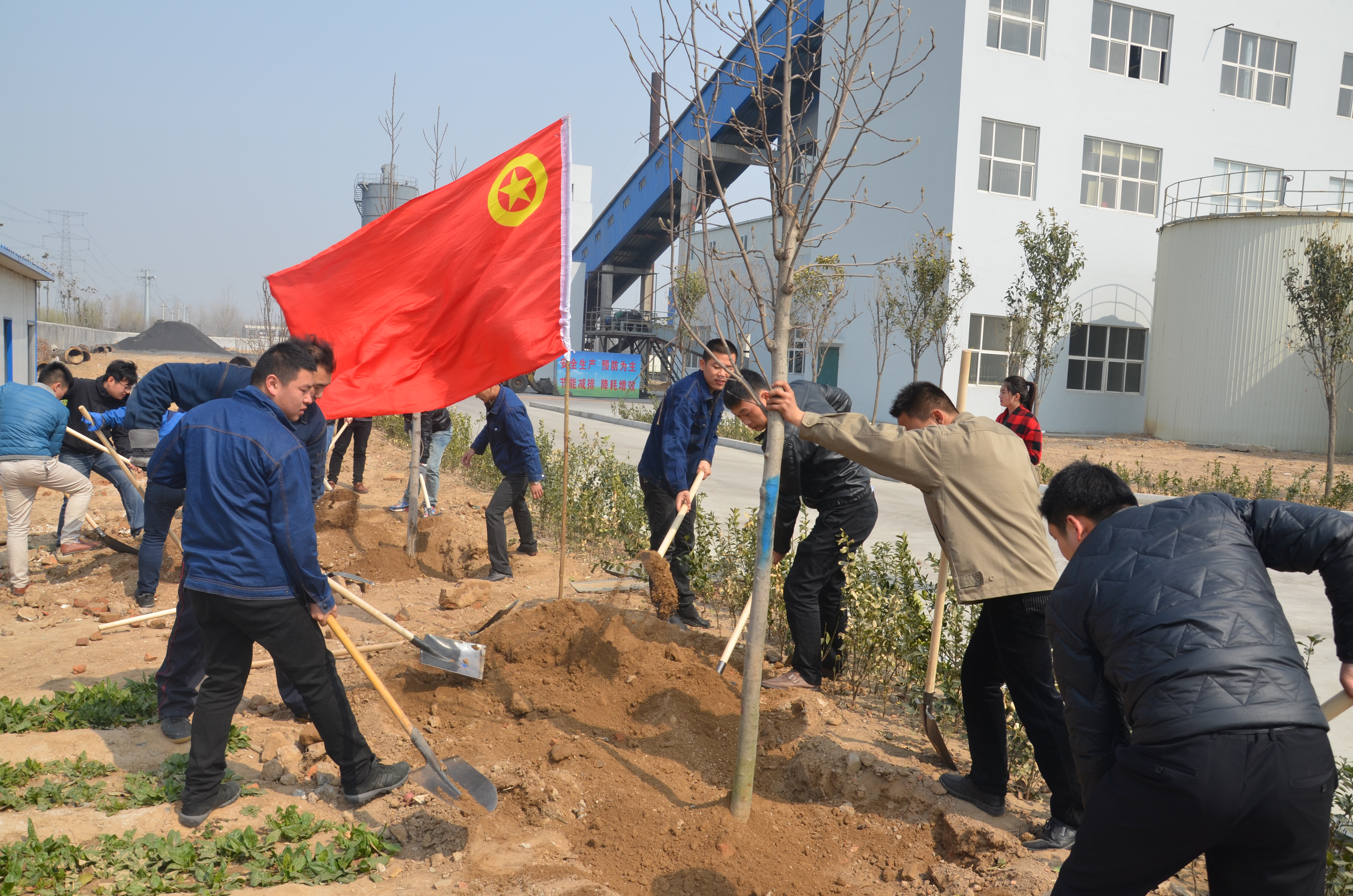 由于活動(dòng)組織較為縝密,各項(xiàng)事宜進(jìn)行的都非常順利。剛到達(dá)植樹地點(diǎn),大家都展現(xiàn)出不同一般的熱情,一個(gè)個(gè)樹坑的挖成,一棵棵樹苗的栽下,象征著一份份綠色的希望;每一滴汗水的流下,每一鏟泥土的填充,則代表著每一個(gè)人的奉獻(xiàn)與關(guān)愛。大家相互配合、協(xié)作,干勁十足。為確保栽植的樹苗成活,大家有序地進(jìn)行栽植、培土、澆水,分別為嘉祥廠區(qū)、汶上廠區(qū)增添了一片新綠。